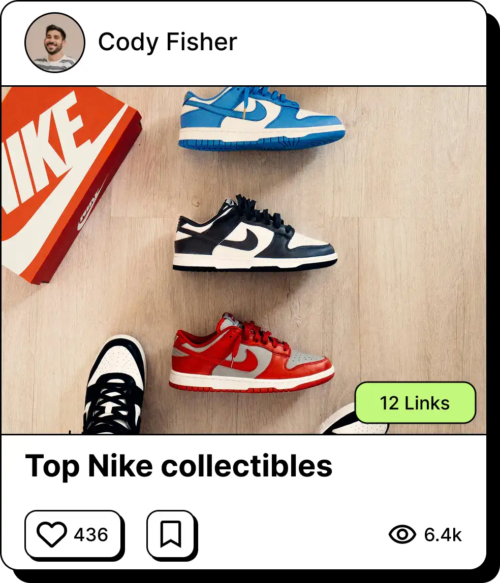 Linkbout has in depth and fully customizable profile builder. You can put it in your social bio and showcase your amazing collections