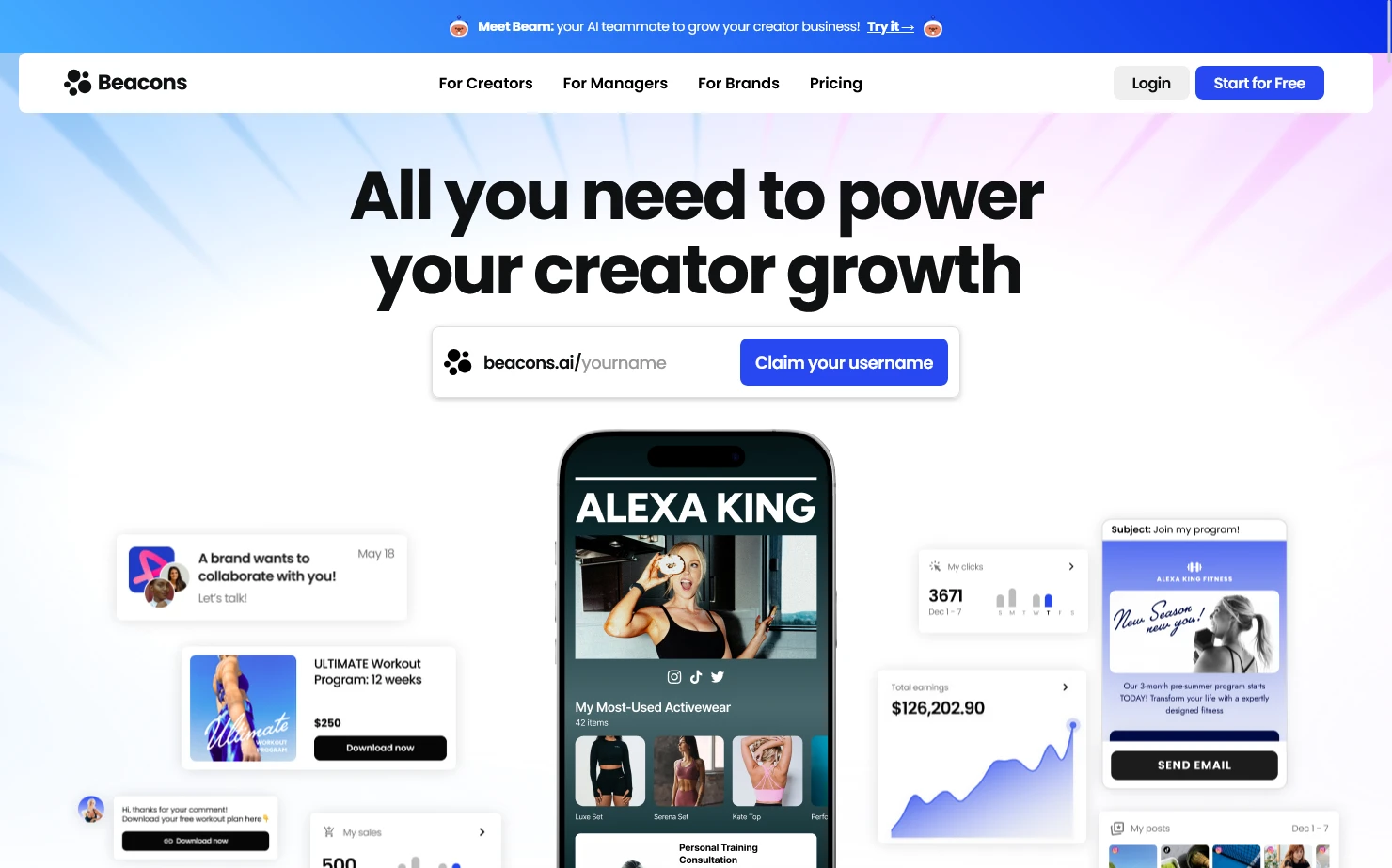 | Beacons | Monetizing creators | E-commerce integrations | Paywall for features |